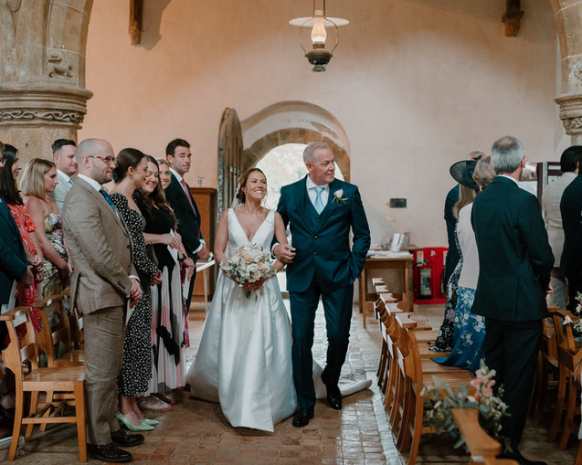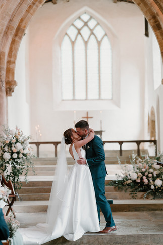 The couple exchanged their vows in a rustic countryside church at Burton Dassett Hills. The church, with its whitewashed walls and historic artwork, provided a serene and intimate atmosphere. @hibiscusfloral created stunning rustic arrangements that blended seamlessly with the church’s charm, enhancing the timeless setting with soft, seasonal blooms.